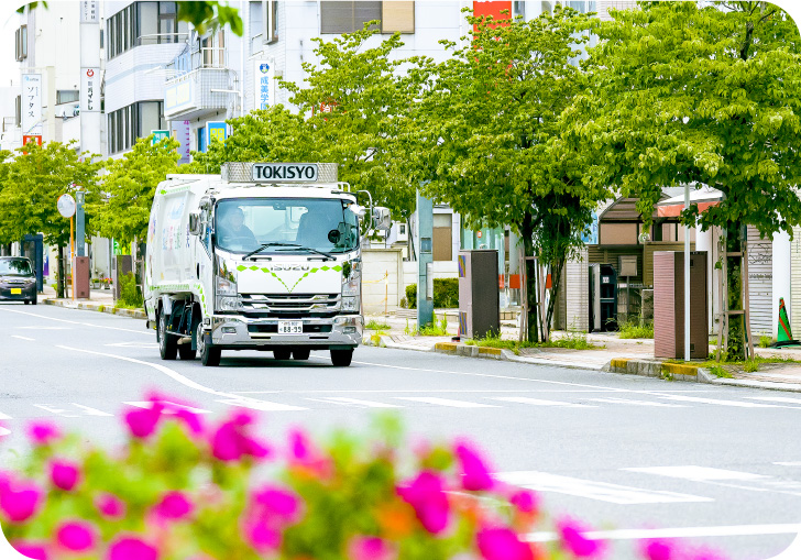 業務には、市町村から委託を受けパッカー車で家庭の一般廃棄物を収集運搬する仕事と、ユニック車やアームロール車、ウイング車等を使って事業系一般廃棄物や産業廃棄物を収集運搬する仕事があります。いずれの業務においても、収集後の清掃を徹底するなどして、地域の信頼に応えています。