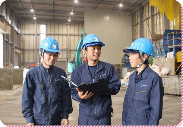 廃棄物の収集運搬から中間処理、再生まで一貫した事業体制を持つ鴇商では、多彩な活躍フィールドが広がっています。